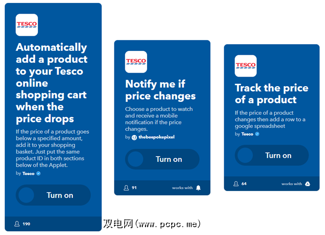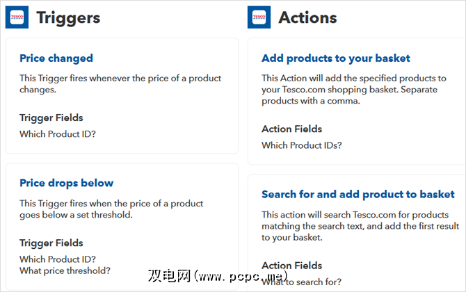 Tesco还提供可定制的触发器和动作,以进行价格变化,降价,向购物车中添加产品以及进行产品搜索。