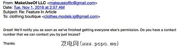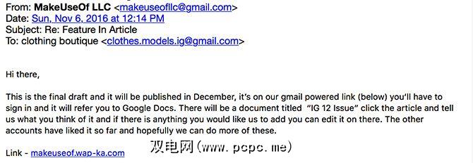 诈骗者通过电子邮件回复说:
