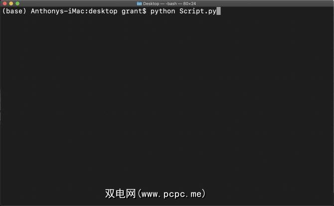打开终端或命令行,并导航到存放脚本的目录。在这种情况下,我在桌面上有“ Script.py"。要执行脚本,请使用python命令,后跟脚本文件:
