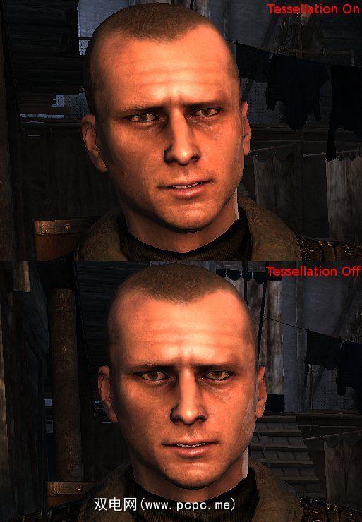 一些游戏引擎已经使用镶嵌细分多年了,但是DirectX 11正式提供了该功能,这意味着现在有一种镶嵌细分标准可以用于所有游戏。过去,镶嵌细分致力于减少远处对象的细节以提高性能。使用DirectX 11,现在可以动态增加对象的细节,从而提高图像质量。在上面的示例中,请注意,启用镶嵌细分后,下巴和头部会稍微变圆一些。