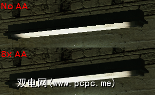 但是,用于确定使边缘变柔和的算法并不是免费的。它需要更多的图形功能,并且可以将已经很挣扎的视频卡拖下。大多数游戏具有许多AA设置-通常为2x,4x和8x。降低AA可以提高性能,但是您要尝试至少保持最小设置,因为完全关闭AA会导致很多较低的图像质量(如上图所示) )。
