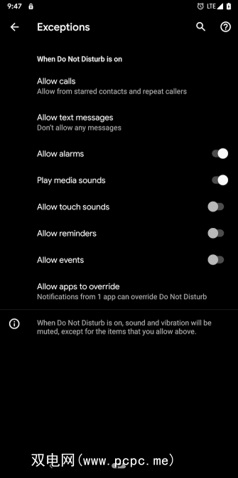 要进行设置,请转到设置>声音>请勿打扰。您可以在此处指定您不想打扰的通知,模式的持续时间,是否要允许重复通话以及其他。最重要的是,您会找到一个例外页面。这使您可以管理即使“请勿打扰"处于活动状态时仍可能发生的事件。