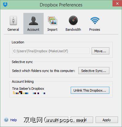为使新功能正常工作,您必须将Dropbox桌面客户端链接到您的Dropbox for Business帐户。单击系统任务栏中的Dropbox图标,单击右上角的齿轮,然后选择首选项。在“ Dropbox首选项"中,切换到帐户标签,在帐户链接下,单击取消链接此Dropbox…