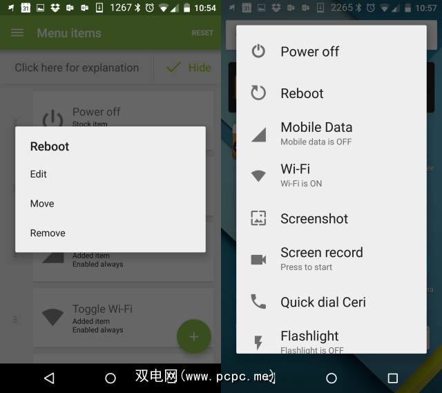 APM +使您可以完全重写电源按钮菜单。除了查看诸如关闭电源和重新启动之类的选项外,您还可以添加诸如手电筒,设置,屏幕记录,甚至设置快速拨号号码之类的内容。