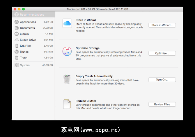 您可以使用两种不同的工具来进行此操作。如果您运行的是macOS Sierra,请使用内置的存储管理工具清除庞大且不重要的文件。