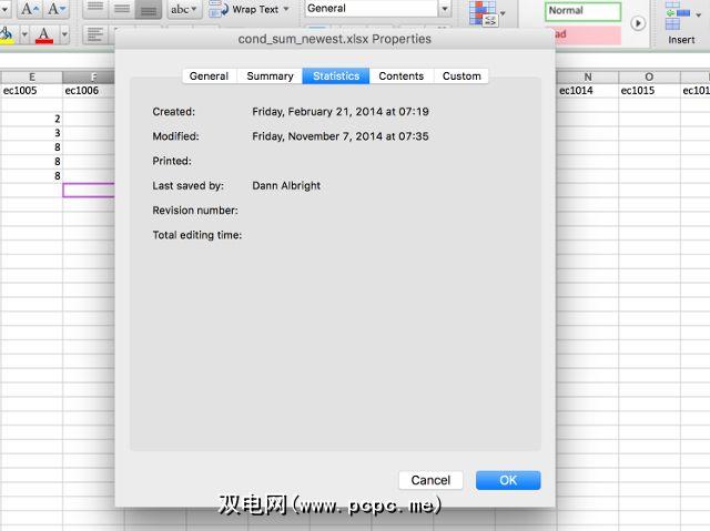 首次打开窗口时,您将看到希望Excel,Word或PowerPoint在其中存储有关文档的基本信息。摘要部分。标题,主题,作者,经理,公司等。如果要更改Excel电子表格作者属性或其他基本属性,可以在第一个窗口中进行操作。