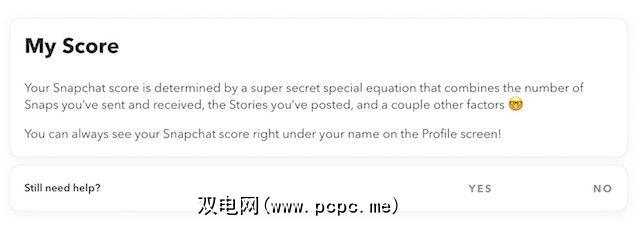 Snapchat不是即将推出其得分功能。下图显示了Snapchat网站的帮助部分提供的有关您分数的所有正式信息。