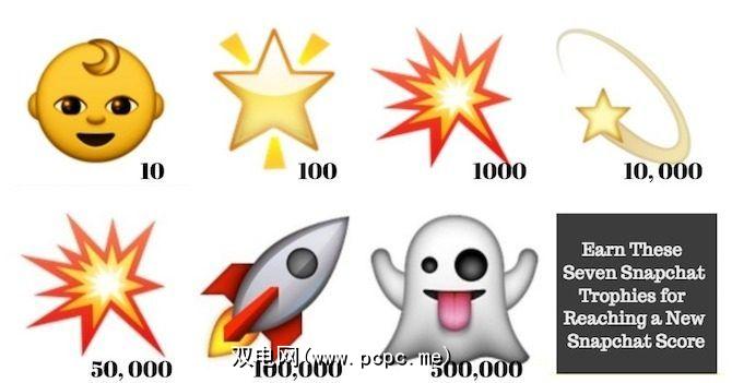 Snapchat的有趣功能之一是“奖杯盒"页面。该应用程序根据用户使用应用程序的不同方式向他们授予奖杯。随着得分的增加,您可以访问七个不同的奖杯(如下图所示)。