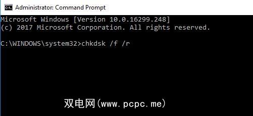 在命令提示符应用程序中,键入 chkdsk / f / r ,然后按 Enter 。等待应用处理您的输入,然后键入 Y ,然后按 Enter 。如果无法启动Windows,也可以通过输入 chkdsk / r C:从故障恢复控制台运行此命令。