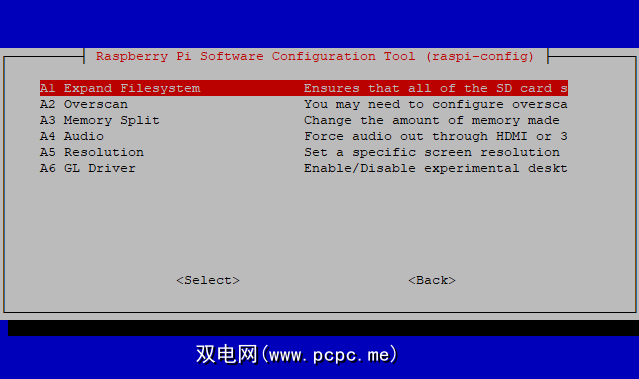 sudo raspi-config在结果菜单中,选择扩展文件系统。