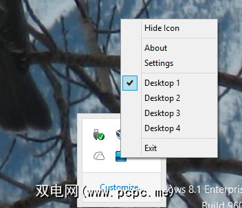 切换桌面是通过键盘快捷键完成的。还可以从系统托盘中快速预览所有打开的桌面: