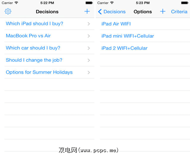 就像Choicemap一样,Decision Buddy是一款决策应用程序,可将流程分解为可管理的小程序步骤,使您最终做出决定而不实际做出决定。它带有数百个预加载的决策选项,因此它比Choicemap更快,但定制程度却不如它。