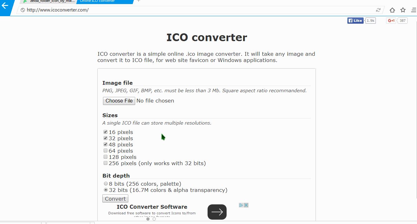 确保图像为正方形大小(例如256×256、512×512等) 并且它是.ICO格式。不过,您会发现大多数文件夹都是.PNG格式,因此请使用此在线ICO转换器来转换格式。 (您应选中尺寸下的所有框,以确保您的文件夹在任何尺寸下均显示良好,并确保选择 32位深度以达到最佳质量。)