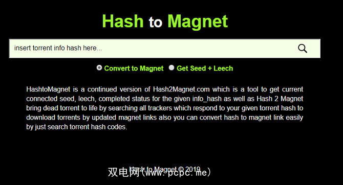 HashtoMagnet是从曾经流行的(但现已停用)的Hash2Magnet工具衍生而来的。