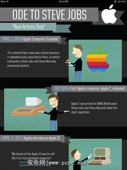 我不确定信息图表是否早于iPad,但是我可以肯定地说,它们是一对很好的伴侣。图表在iPad上看起来很棒。此演示文稿应用程序是对《第五专栏》客户的数百张信息的简单下载,其中包括《时尚先生》杂志,History.com,PlayStation,TurboTax,《大西洋》杂志,诺基亚和Travelocity之类的名字。