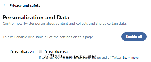 转到隐私和安全>个性化和数据>编辑>跟踪在网络上看到Twitter内容的地方,然后取消标记相应的复选框。
