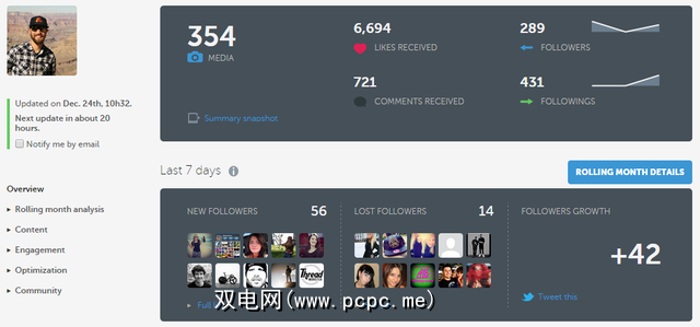 该服务可提供有关Instagram统计信息的简要概述,除了一些帐户管理工具之外。