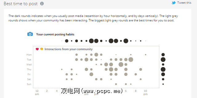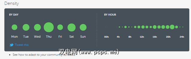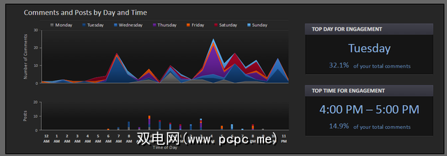 通过简单衡量,您可以轻松地根据社区的参与情况知道发布的最佳时间。但是,当然,它们不仅显示数字,而且还显示两种图形。