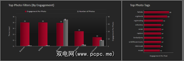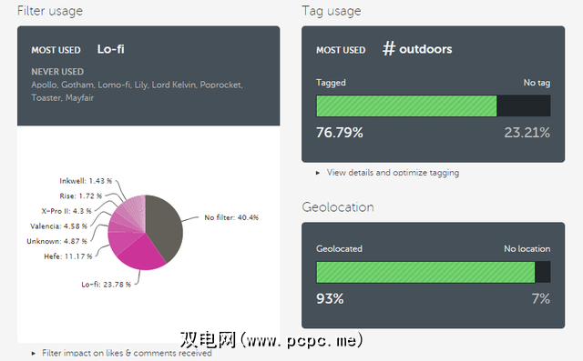 发布的图片显示您发布的图片与之前设置的时间(例如上周)相比的数量。然后,它可以分解使用各种过滤器发布的图片的数量。