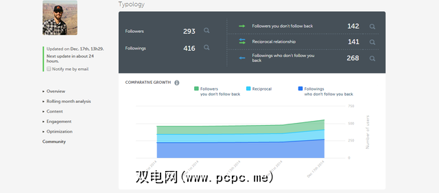“社区"页面显示了您关注的人与关注您的人的相对增长。概述了新的追随者,迷失的追随者和新的追随者。下面是“您喜欢的人"部分,向您全面介绍了您真正喜欢的人,以及有关您可能想要关注的人的一些建议。