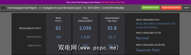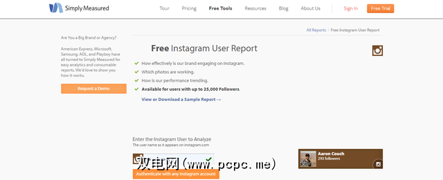 Simply Measured的高级商务社交媒体分析工具包括一些免费赠品,其中包括Instagram用户分析以衡量您的参与度,内容和趋势。