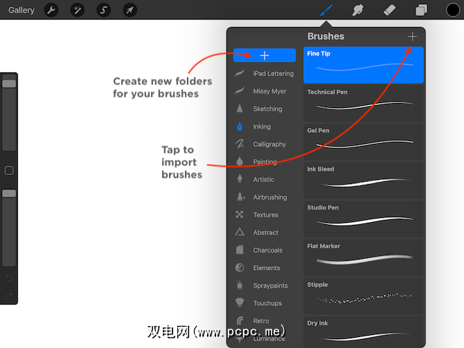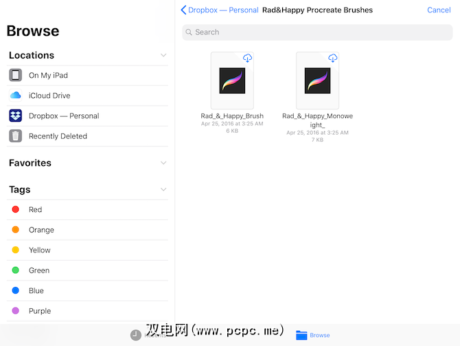 您可以在计算机上下载画笔并将其保存到云(iCloud或Dropbox)中,也可以直接在iPad上下载它们。