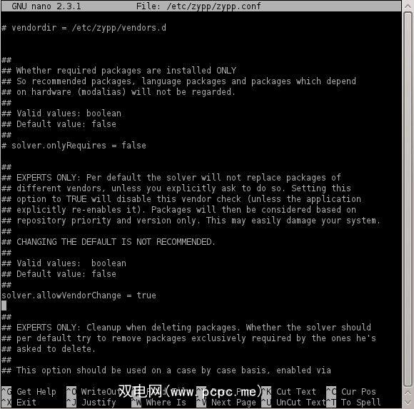 但是由于我们在技术上正在做的是使其变得不稳定,因此我们可以根据需要进行操作。为此,请使用您喜欢的图形或终端文本编辑器来编辑文件 /etc/zypp/zypp.conf 。在这里,您需要将 solver.allowVendorChange 从false设置为true。保存文件,然后再次打开YaST以检查更新。现在,您应该安装更多的KDE更新。