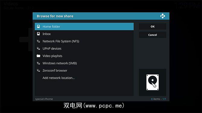 在大多数情况下, tvOS上的Kodi功能完美。您可以添加所选的媒体位置,包括本地存储,网络(NFS)驱动器,UPnP共享,SMB共享(来自Windows)或兼容的网络位置。由于磁盘空间的处理方式(需要空间时会清除文件),您在使用本地存储方面会受到限制