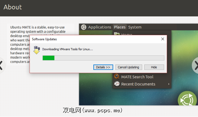 不久之后,您将看到警报,提示您 VMware Tools for Linux 软件包的安装。这不是必需的,但这是“轻松安装"过程的一部分。最好同意这一点,因此请单击确定。