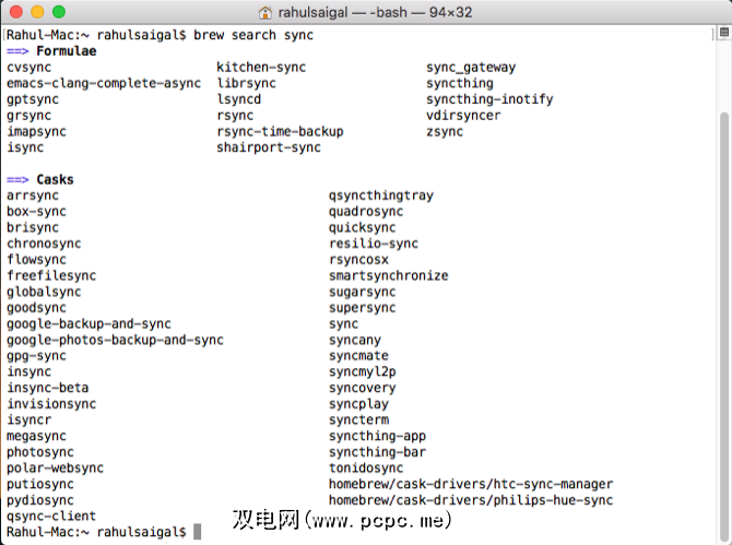 有时,您可能不记得某个特定的应用程序名称。幸运的是,您只需要输入一些相关的关键字,Cask就会搜索包含它们的应用程序。下面的屏幕快照显示了输入此命令时发生的情况: