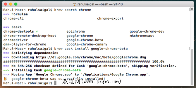 brew tap homebrew/cask-versions第二个Cask命令用于安装替代版本的Casks。例如,它们包括Beta,您可能要安装的浏览器的开发版本,旧版开源应用程序的最新版本等。