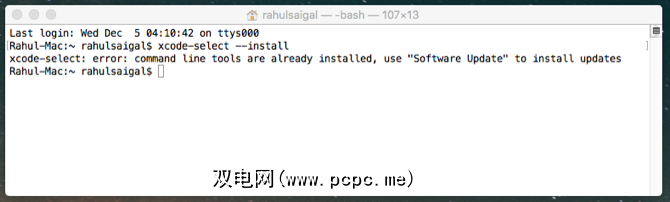 xcode-select --install键入此命令时,将弹出一个弹出窗口,并显示消息。“ xcode-select"命令需要命令行开发人员工具。您要立即安装这些工具吗?单击安装按钮继续安装。
