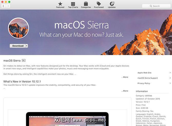 启动 Mac App Store ,然后转到更新标签以找到最新版本的macOS。您也可以通过按名称搜索找到它,它通常也显示在精选标签右侧的快速链接下。