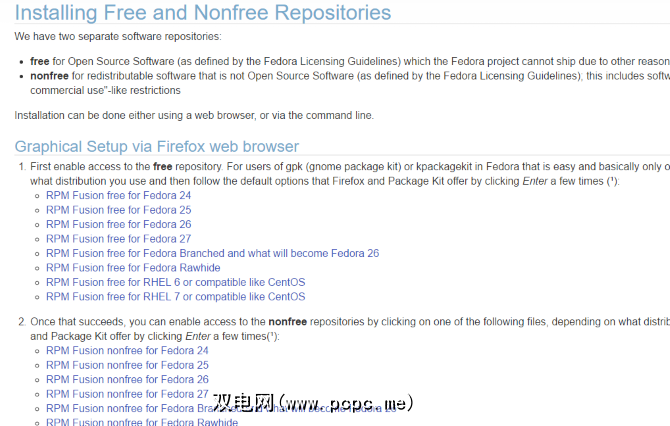 lspci | grep -i VGA如果您看到Nvidia的详细信息卡,请转到RPM Fusion网站,并为您的Fedora版本安装免费和非免费软件包。这应该通过Firefox浏览器,使用PackageKit来安装软件包。