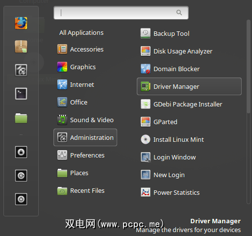 对于“主流" Mint,打开菜单>管理>驱动程序管理器,您会在其中找到您可以安装的驱动程序。
