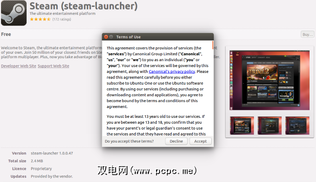 一旦感到满意,请单击购买,然后按照显示的步骤为Ubuntu安装Steam客户端。在某些情况下,可能需要安装其他软件,但这是由USC处理的,因此您所需要做的就是输入密码进行确认。