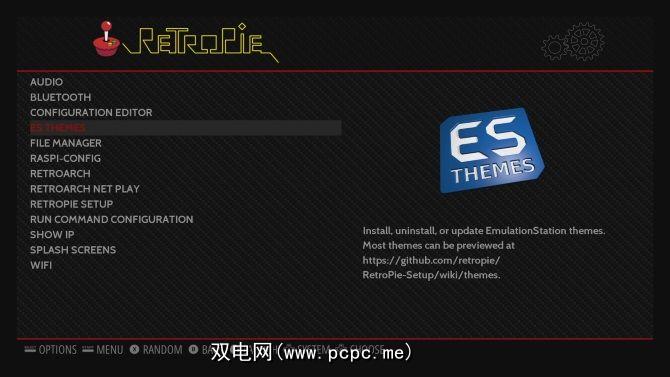 要查找新主题,您需要导航到 RetroPie 菜单,然后选择 ES主题。