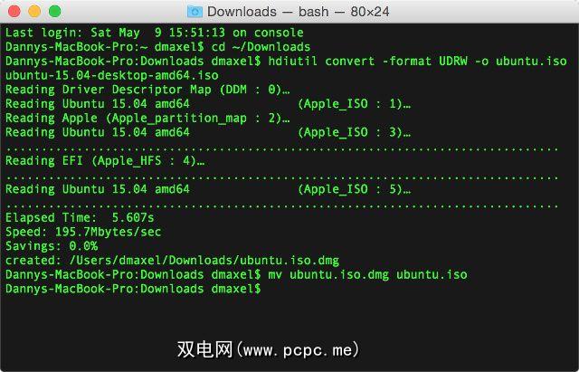 进行此操作,确保将xxxx替换为已下载ISO的其余文件名。这会将ISO映像转换为Mac可以更好理解的格式。在此之后加上