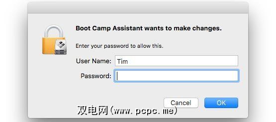 在出现以下情况时,单击 Continue (继续)您已经准备好开始该过程,然后输入管理员密码。 macOS将开始对驱动器进行分区。再次输入管理员密码,然后Mac将重新启动并启动Windows安装程序。