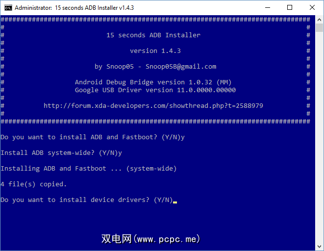 一旦下载,请双击可执行文件。它将命名为 adb-setup-1.x.x.exe 。现在,您将被问到一系列问题: