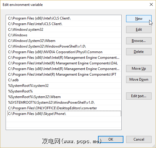 在系统变量(位于底部)下,选择名为 Path 的变量。然后选择修改。当新窗口打开时,选择新建,然后将路径粘贴到平台工具。按 Enter ,然后按 OK 。