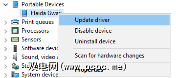 下载驱动程序后,您将需要安装它。将您的Android设备插入PC。按 Windows键+ X ,然后选择设备管理器。向下滚动到便携式设备,然后单击括号展开。右键单击设备名称,然后选择更新驱动程序。这将打开驱动程序更新向导。