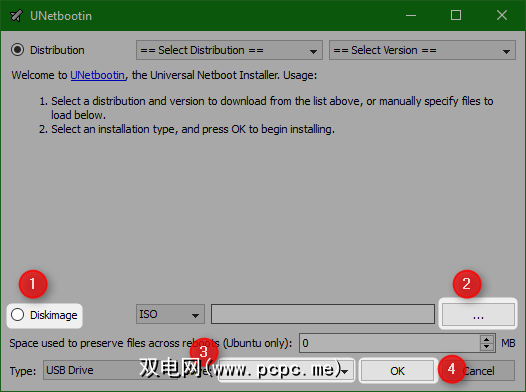解压缩文件并运行程序后,首先,单击在浏览器上。其次,选择USB驱动器(非硬盘驱动器)。第三,如果您插入了多个USB闪存驱动器,请选择正确的闪存驱动器。第四次也是最后一次,单击确定。