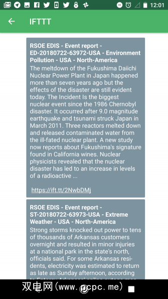 现在,当发生新的全球紧急情况并出现在RSOE EDIS系统内部时,您将在您的手机上收到即时通知。当您在手机或计算机上的Pushbullet中查看通知时,外观如下所示: