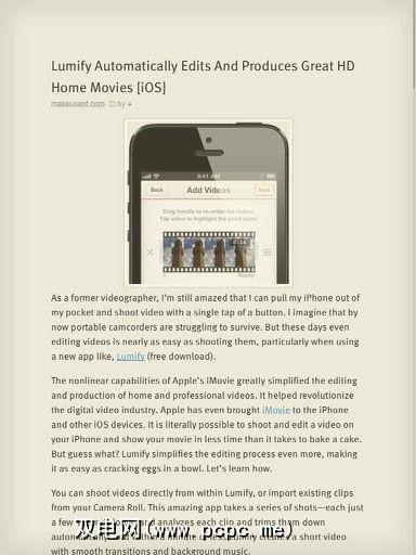 下载内容至该应用程序分为两列,包括每篇文章的标题和主要段落。选定的内容以无干扰的阅读器格式打开,该格式会剥离周围广告的网页和其他不必要的图像。