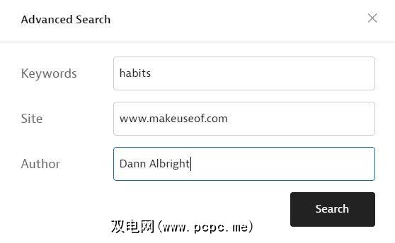 高级搜索是有限的。但是,您可以使用它来限制从一个网站收集的文章的搜索。