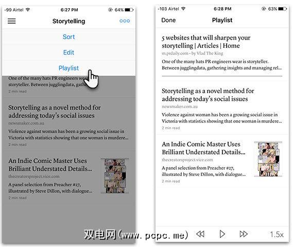 Instapaper与Pocket相比有一个优势。您可以创建文章的播放列表。