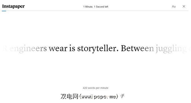 Instapaper及其快速阅读功能可以帮助您全面了解概览长文件。它可以帮助您决定是要读取保存的内容还是忽略它。如果您愿意,可以更慢地使用它。