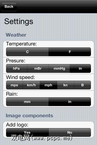 您可以转到“设置"屏幕,根据自己的喜好调整应用程序。您可以更改应用程序对温度使用华氏温度还是摄氏温度以及其他一些有用功能。这样,您就可以使用适合您所居住区域的度量。