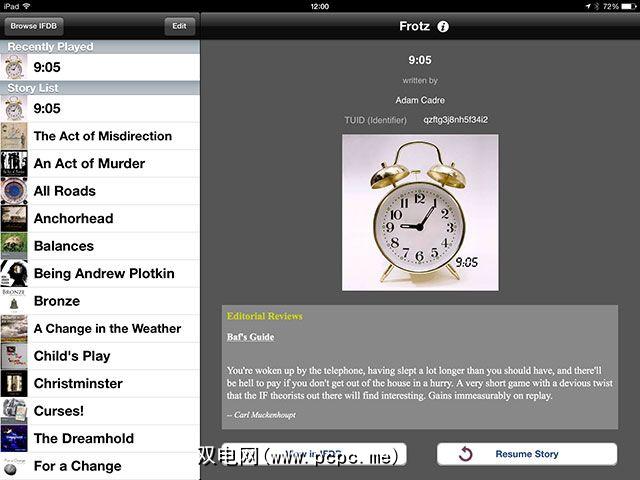 正如任何IF引擎所期望的那样,有很多选项可以自定义故事在屏幕上的显示方式。您还可以使用基于Web的文件传输来导入现有的Z-Machine应用程序和数据,将进度进度备份到Dropbox并自动将其备份到Dropbox,以在多个设备之间自动同步(如果您拥有iPhone和iPad,则可以完美同步)。如果您甚至对IF的兴趣已逝,请不要犹豫下载Frotz。冒险",您可能会想像一个特定的文字冒险-Zork。这段特殊的文字冒险在当时非常先进,引入了介词和连词到命令的概念,尽管它起源于麻省理工学院的动态建模小组,但该游戏最终还是由一家名为Infocom的公司进行商业发行。